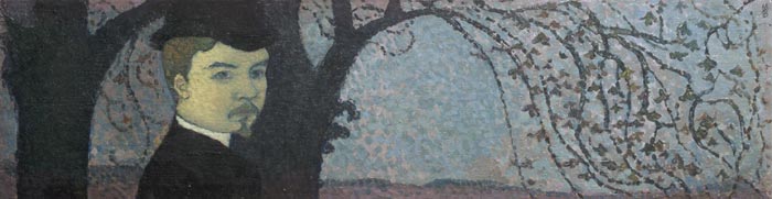 Portrait de l'artiste sous les arbres, v. 1891, huile sur toile, 21,5 x 80 cm, coll. part.